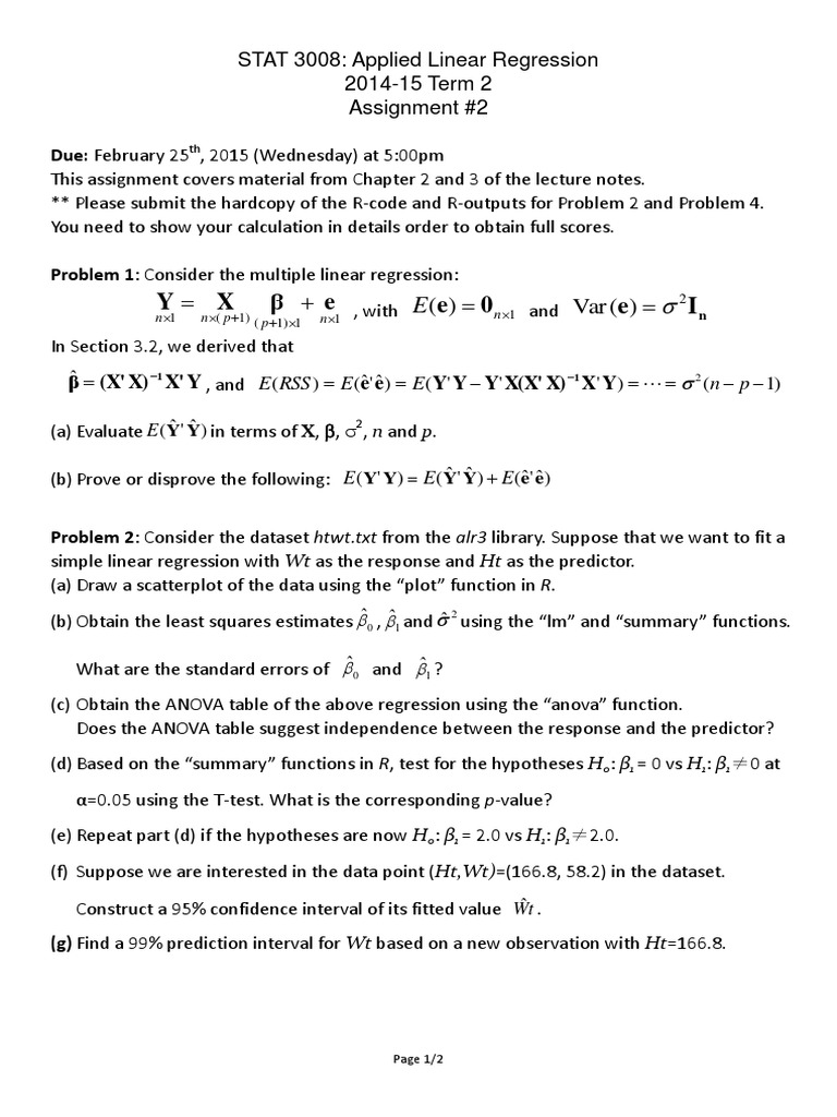 Cu 3008 Assignment 2 Due Feb 25th Regression Analysis Linear Regression